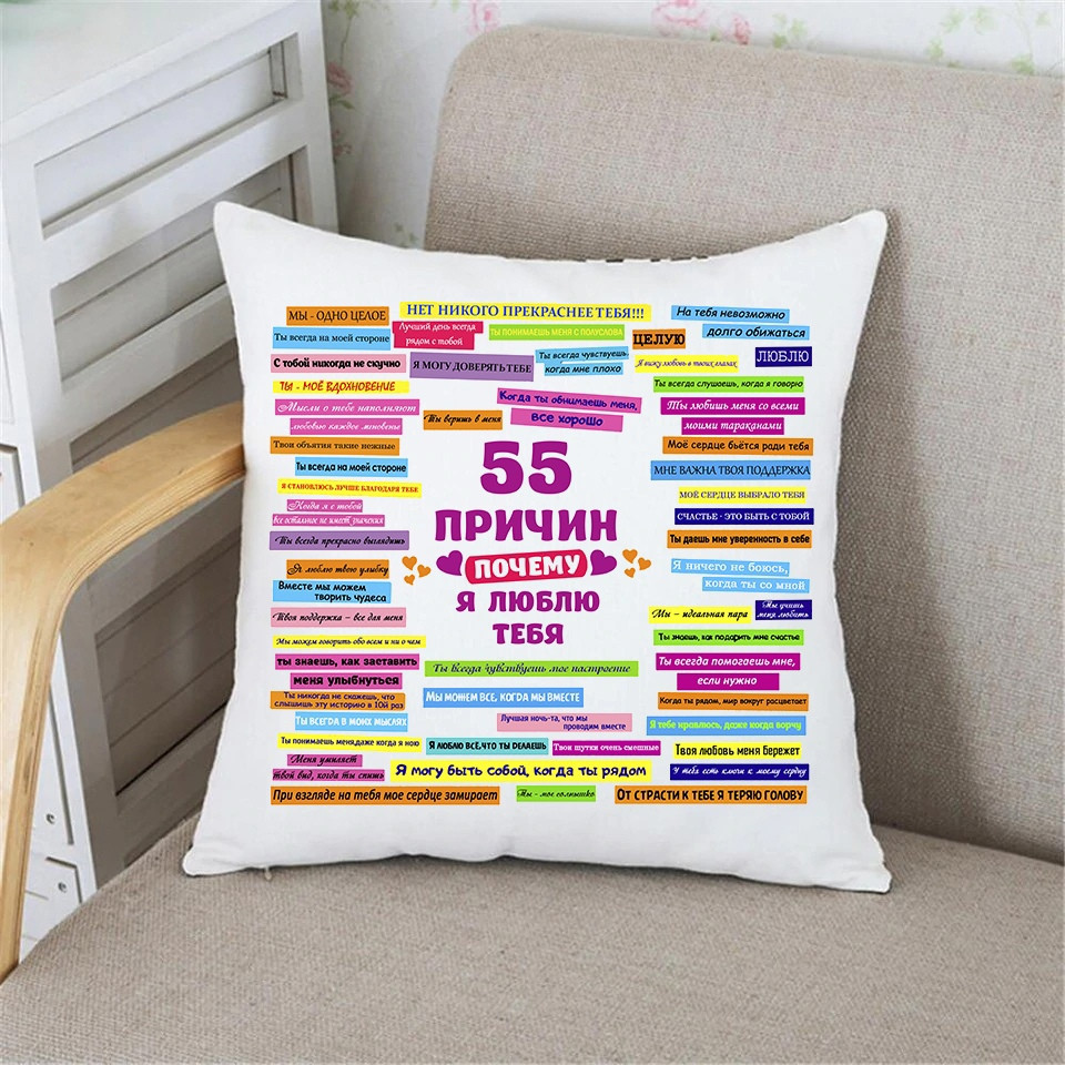 Подушка 55 причин чому я тебе люблю серце. Подарунок улюбленому/любому